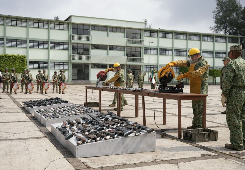Emiliano Zapata, Ver., miércoles 26 de marzo de 2025.- En el marco de la colaboración entre el Gobierno de México y de Veracruz para fortalecer la seguridad y la pacificación del estado, se llevó a cabo la Destrucción de Armamento Decomisado, en la 26/a Zona Militar de El Lencero.