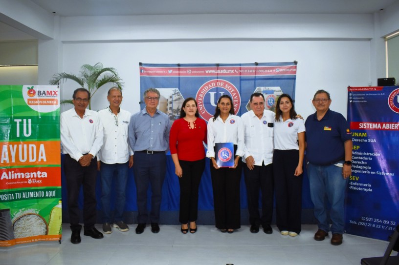 Coatzacoalcos, Ver., a 26 de marzo del 2025. La Universidad de Sotavento (US) y el Banco de Alimentos de México Región Olmeca (BAMX) firmaron hoy un convenio de colaboración interinstitucional, a fin de hacer una alianza estratégica para la gestión social de proyectos de asistencia.