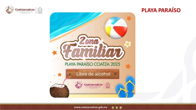La Playa Coatza, que estará en la avenida Mariano Matamoros y Pedro Moreno, será equipada con toboganes inflables, escenario, accesos con rampas y mobiliario para visitantes.