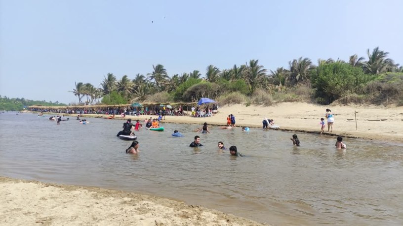 Desde tempranas horas del día, cientos de bañistas comenzaron a llegar al lugar, donde los ejidatarios y vecinos habilitaron enramadas, así como un pintoresco puente hecho de troncos de palma para facilitar el acceso.