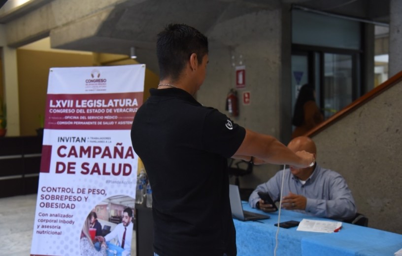 Con la finalidad de fomentar la cultura de la atención a la salud, el Congreso del Estado de Veracruz, a través del Servicio Médico, y la Comisión Permanente de Salud y Asistencia, realizaron la jornada médica enfocada al control de peso, sobrepeso y obesidad, con analizador InBody y asesoría nutricional.Esta campaña, coordinada por la titular del Servicio Médico, doctora Claudia del Rosario García Pérez, está dirigida al personal del Poder Legislativo y sus familias y se realizó en colaboración con un laboratorio particular. Con estas acciones se pretende identificar y controlar tempranamente casos de sobrepeso y obesidad, toda vez que son factores de riesgo para desarrollar otro tipo de enfermedades.
