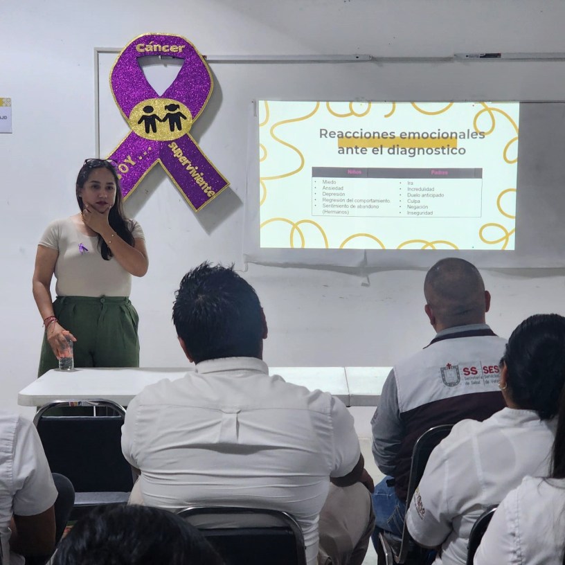 Coatzacoalcos Ver.- La Secretaría de Salud, a través de la Jurisdicción Sanitaria XI que encabeza la doctora Susana Morales Castro, inició las actividades para conmemorar el mes del superviviente del cáncer infantil con la ponencia “El impacto emocional del cáncer infantil en las familias”, dirigido a personal de atención médica, impartida por la psicóloga especializada en salud infantil y del adolescente Carolina Téllez Girón Rivadeneyra.