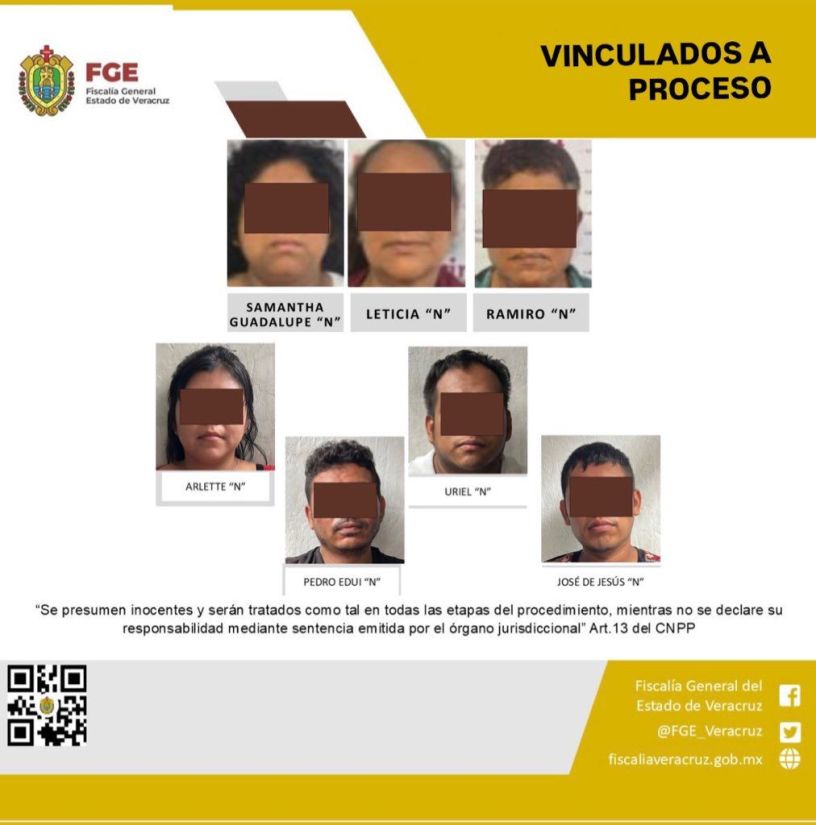 Xalapa, Ver., 26 de junio de 2025.- La Fiscalía General del Estado informa que, como resultado de trabajos de investigación realizados por la Fiscalía de Investigaciones Ministeriales y la Fiscalía Regional Coatzacoalcos, fueron vinculadas a proceso siete personas, presuntamente relacionadas con una célula delictiva que opera en la zona sur de la entidad.