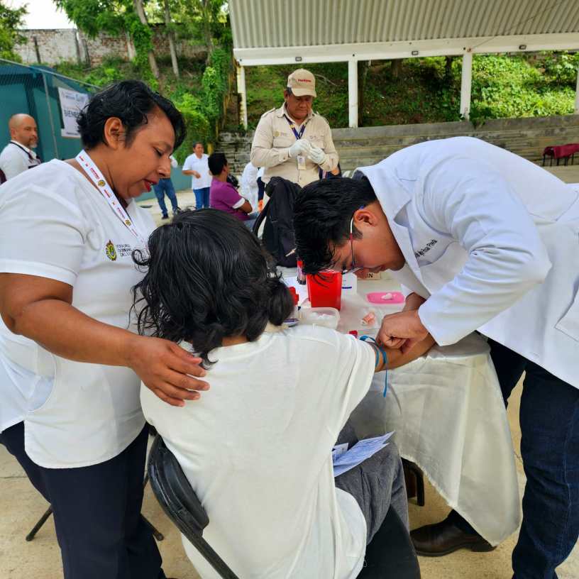 Dicha actividad es parte del seguimiento a la vigilancia de pacientes que reportan sintomatología presuntamente derivada de los olores a químicos en la zona, por lo que se contó con personal para realizar estudios laboratoriales como biometría hemática, química sanguínea, perfil de lípidos, hemoglobina glucosilada y reacciones febriles.