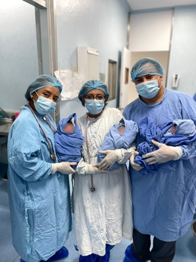 Gracias a la oportuna intervención de un equipo multidisciplinario conformado por dos ginecólogos, tres pediatras, anestesiólogos y personal de Enfermería la intervención quirúrgica se realizó de manera exitosa, salvaguardando la vida de la madre y tres bebés.