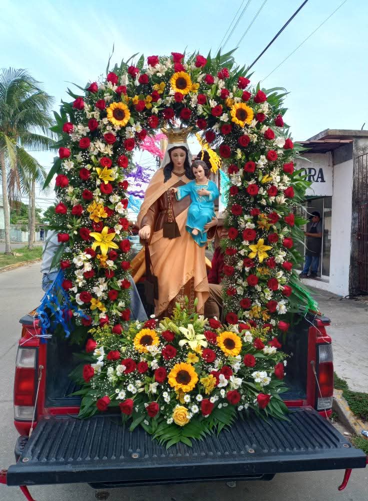 En la capilla se tiene programado la misa y mañanitas en honor a la Virgen del Carmen y mañana el paseo de lanchas por el río Coatzacoalcos.