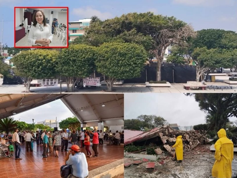Hace seis meses, las fuertes rachas del Frente Frío 24 provocaron que uno de los muros del SUM colapsara, teniendo que derribar toda la estructura. El pasado 19 de junio fue cercada el área y esta semana empezaron con los trabajos en forma.