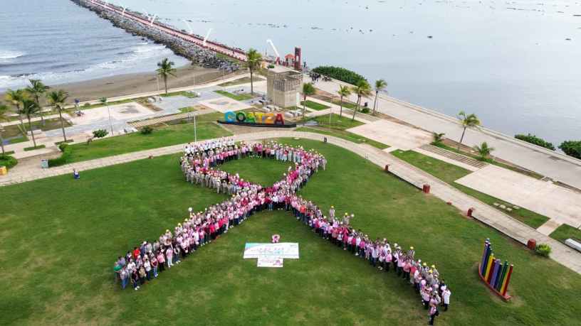 Coatzacoalcos Ver. .- Con el lema “Si tú estás bien, todo está mejor, #MujeresCotraElCáncer”, la Secretaría de Salud de Veracruz a través de la Jurisdicción Sanitaria XI, conmemoró el día nacional contra el cáncer de mama, con una caminata sobre el malecón costero, “un exploratón; demostración masiva de la técnica de exploración de mamas” y la formación de un lazo humano.