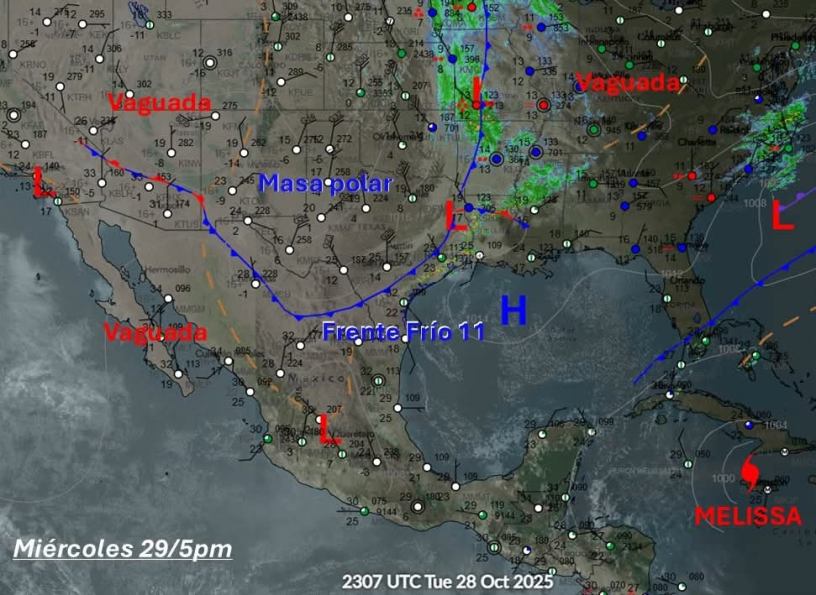 El #FrenteFrío_11 se aproxima al litoral de Texas y se espera ingrese al noroeste del Golfo de México esta noche. Según los modelos actualizados, el miércoles 29 (se adelanta) pasará por: