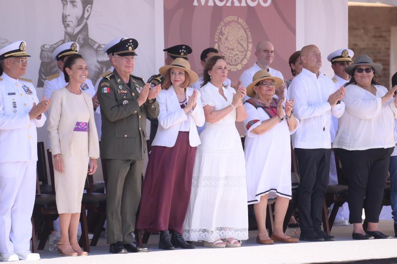 La Presidenta de México, junto al alto mando de la Armada, entregó condecoraciones al personal naval por Mérito Bicentenario, Mención Honorífica, Mérito Docente y Mérito Deportivo y Facultativo; así como los reconocimientos a los tres ganadores del concurso literario nacional sobre la Consolidación de la Independencia en la Mar.