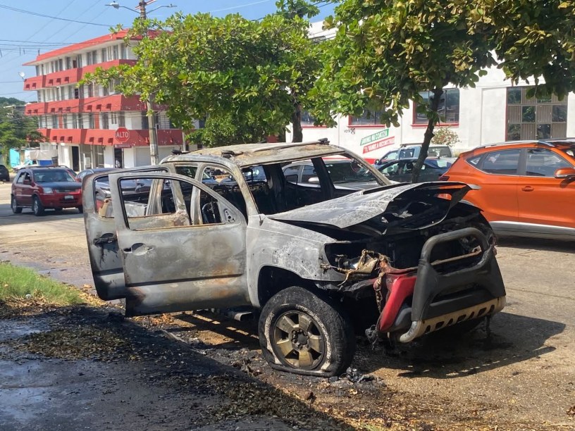 En cuestión de minutos, la camioneta ardió hasta quedar prácticamente reducida a chatarra.