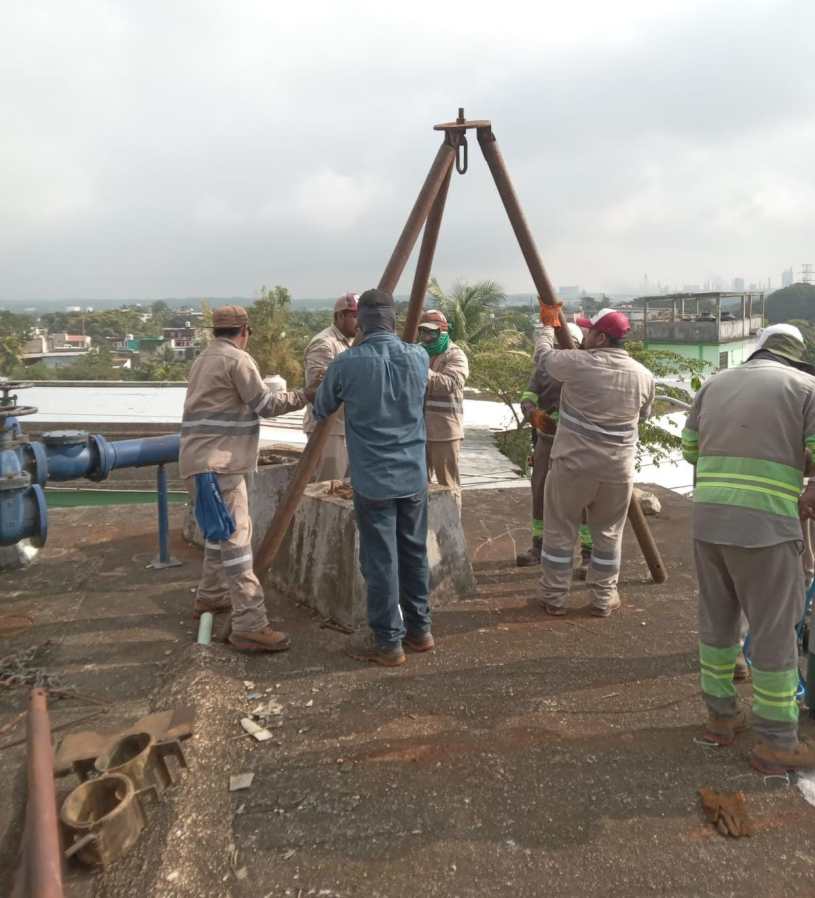 Coatzacoalcos, Ver., a 24 de enero de 2026. Como parte del compromiso del Gobierno Municipal que dirige el presidente Pedro Miguel Rosaldo García, en conjunto con la CMAS a cargo de la Ingeniero Ana Bertha Hernández Aguilar, esta mañana se llevan a cabo las maniobras de instalación de un equipo de bombeo nuevo en la cisterna de Mundo Nuevo.