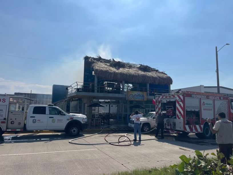 Gracias a la rápida intervención de Protección Civil y Bomberos de Coatzacoalcos, se logró controlar el fuego que consumió la palapa del restaurante ubicado en la zona del Malecón.