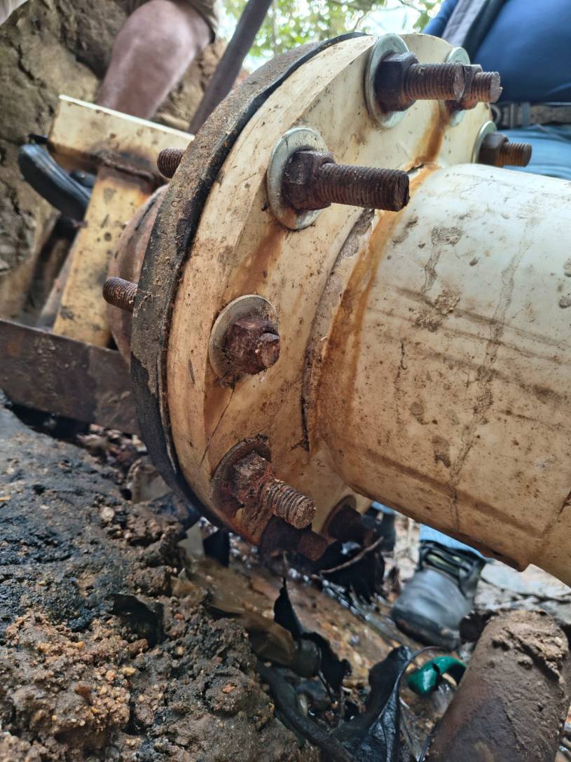 A través del personal operativo se realiza la reparación de la línea principal y sustitución de piezas dañadas que ocasionaron la fuga y el desperdicio del vital líquido.
