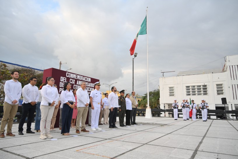 Coatzacoalcos, Ver., 5 de febrero de 2026.– En el marco del 109 aniversario de la Promulgación de la Constitución Política de los Estados Unidos Mexicanos de 1917, el presidente de Coatzacoalcos, Pedro Miguel Rosaldo García, encabezó la ceremonia cívica realizada en el parque Independencia, donde reafirmó el compromiso de su gobierno con los principios constitucionales, la legalidad y la transformación del municipio.