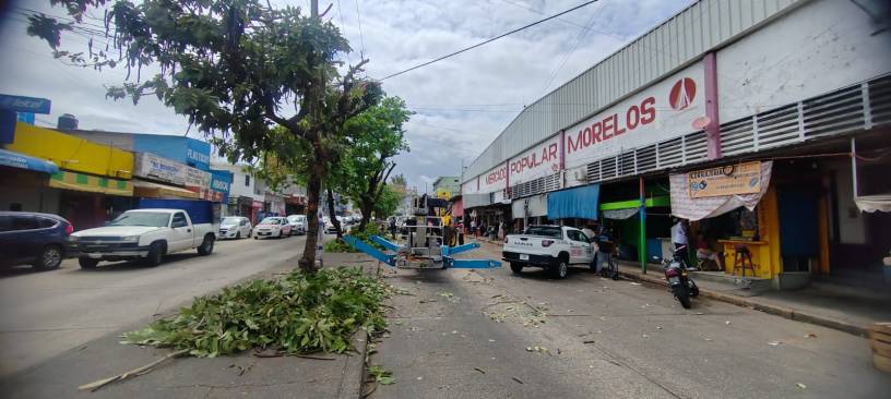 Destacó que en la semana distintas áreas del Ayuntamiento han realizado mejoramiento de la imagen urbana, donde la Jefatura de Mercados, en coordinación con el área de Ornatos, realiza la poda de árboles para despejar accesos y mejorar la visibilidad de las fachadas.