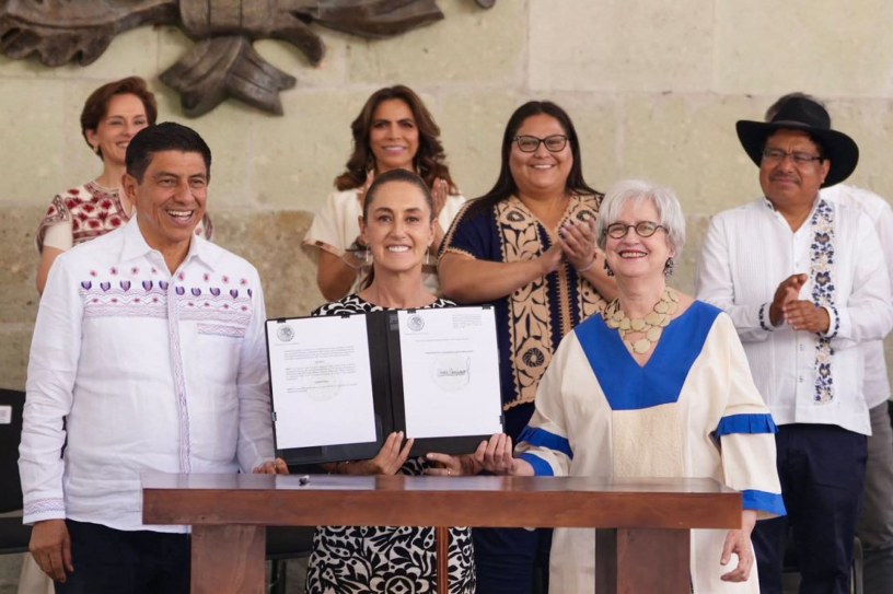 🤝 Acompañada por el gobernador de Oaxaca, Salomón Jara Cruz, se rindió homenaje al Benemérito de las Américas en su tierra natal, recordando su legado de justicia, legalidad y amor por México.