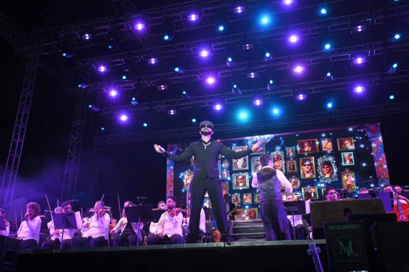 Ante un recinto completamente lleno, el artista compartió el escenario con la Orquesta Sinfónica del Gobierno del Estado de Veracruz dirigida por Cristian Texon, transformando la noche en un viaje musical que combinó arreglos orquestales, luces y una atmósfera vibrante, elevando el reguetón a un formato de gala sin perder la esencia del ‘perreo’.