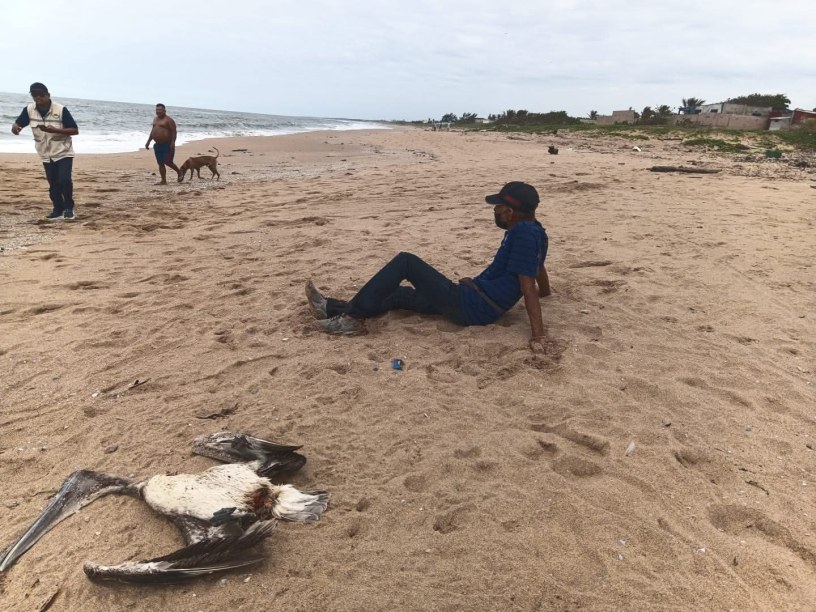 El primer hallazgo se registró en la zona de playa, a la altura de la calle Carolino Anaya, en la colonia Escolleras, donde un pelícano fue encontrado muerto en un área donde recientemente se ha reportado el recalamiento de chapopote.