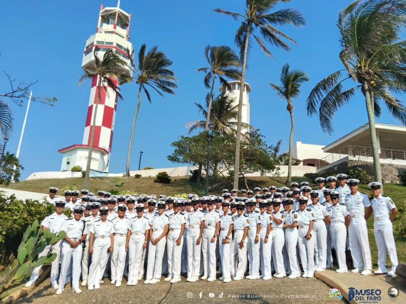 Como parte de sus actividades de formación académica y naval, cadetes de tercer año de la Heroica Escuela Naval Militar realizaron ayer lunes una visita al Parque Bicentenario de Coatzacoalcos y al Museo del Faro “Caminos del Agua” ubicado en villa Allende.
