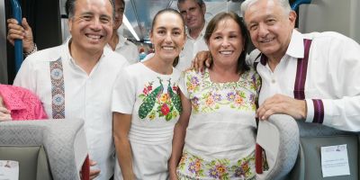 ROCÍO NAHLE VIAJA CON AMLO Y SHEINBAUM EN RECORRIDO INAUGURAL DEL TREN MAYA TRAMO QUINTANA ROO- YUCATÁN