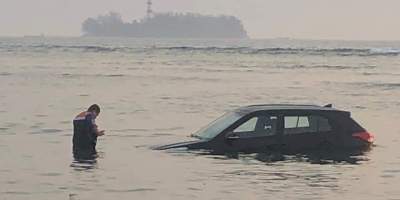 Una camioneta amaneció en el mar de Boca del Río, Veracruz.
