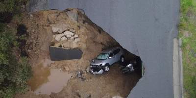 Caen vehículos a socavón en California, suman 17 muertos por tormentas invernales