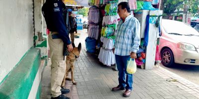 Policía Municipal de Coatzacoalcos fortalece la proximidad social con la Unidad Canina en el centro de la ciudad