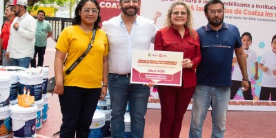 Arranca Pedro Miguel Rosaldo y Margarita Santopietro programa de apoyo a escuelas en Coatzacoalcos