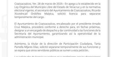 Funcionarios del Ayuntamiento de Coatzacoalcos solicitan licencia