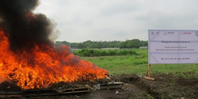 FGR Y SEMAR INCINERAN CERCA DE UNA TONELADA DE DROGA INCAUTADA EN VERACRUZ