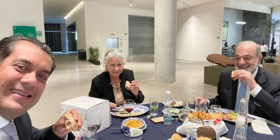 Sergio Gutiérrez Luna come hamburguesas de Sanborns con Carlos Slim