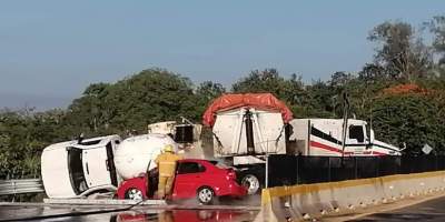 Vuelca pipa cargada de gas sobre la carrera de Transístmica