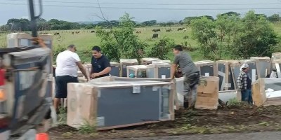 Fuerte choque en Soteapan deja tres lesionados; taxista prensado lucha por su vida.