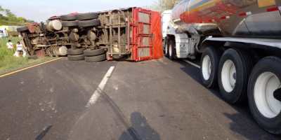 Se registra choque múltiple en la Coatzacoalcos- Villahermosa; pobladores rapiñan alimentos para pollos