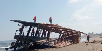 Continúa desmantelamiento del restaurante flotante «El Atracadero» en Coatzacoalcos